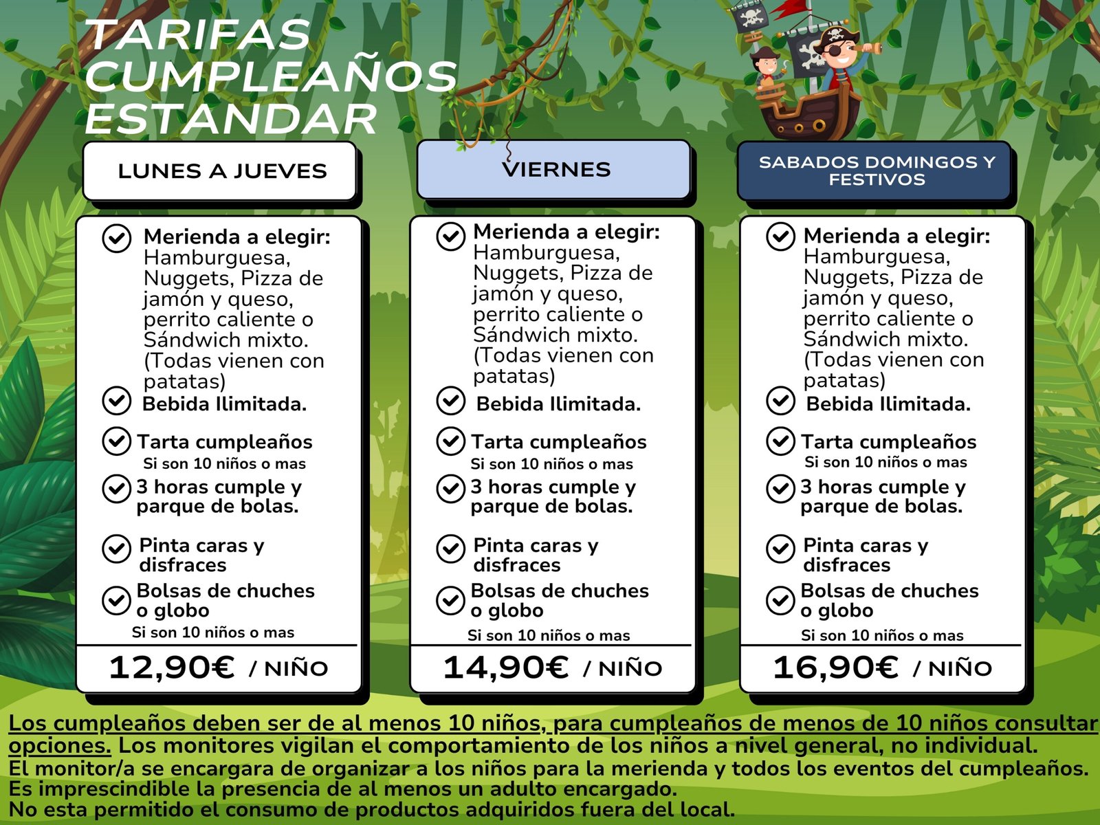 ¡Sí! Ofrecemos packs de cumpleaños personalizados, con merienda, tiempo exclusivo en el parque y opción de tarta, decoración y animación. Pregúntanos por las opciones y precios.